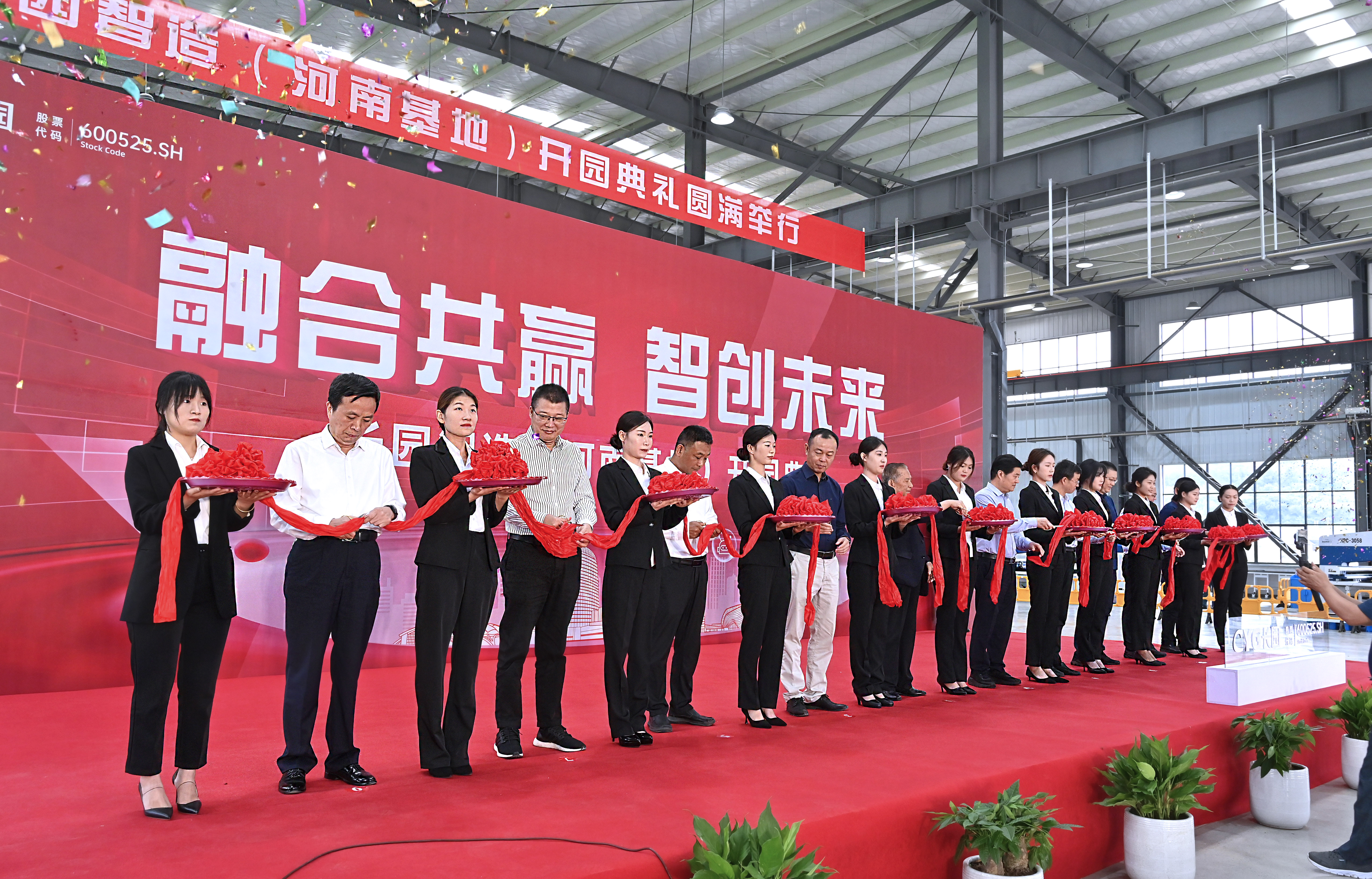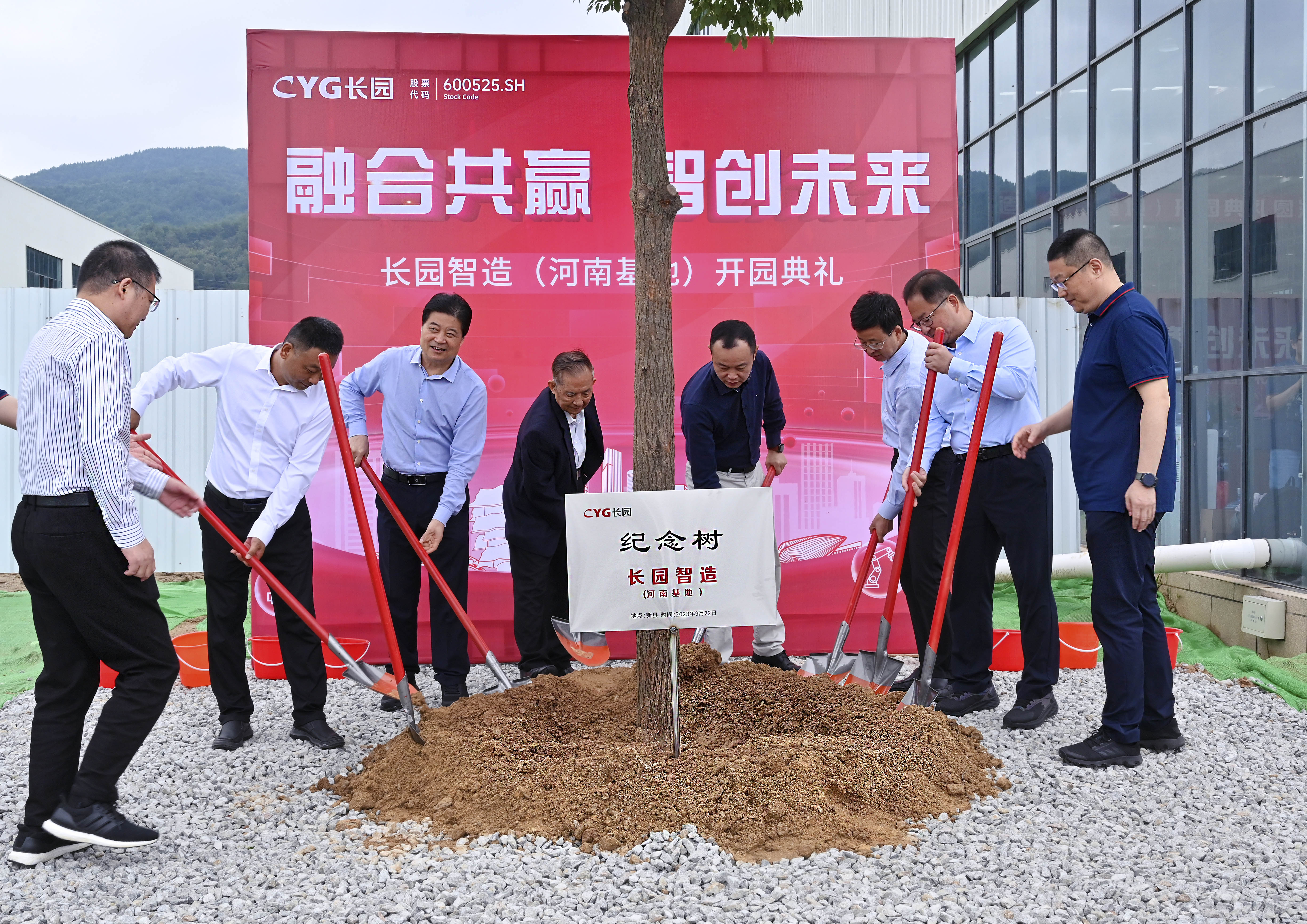 参与剪彩仪式的10位嘉宾领导在一声声倒数及礼炮声中同执金剪,并在基地共同种下一棵香樟树以作纪念。香樟树枝繁叶茂,四季常青,寓意着公海jcjc710智造(河南基地)将像香樟树一样生命力顽强旺盛、扎根新县繁荣生长。